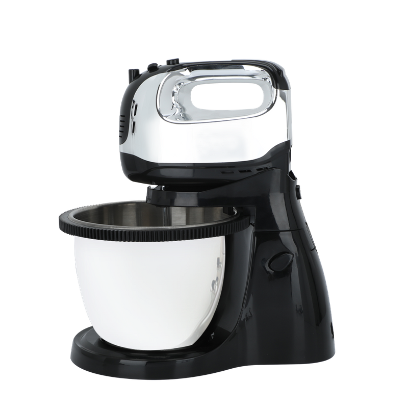 Гальванический корпус для легкой очистки: Гальванический корпус облегчает установку или снятие чаш и аксессуаров. Каждый настольный миксер поставляется с 3-литровой чашей из нержавеющей стали, двумя насадками для взбивания яичных белков и сливок.